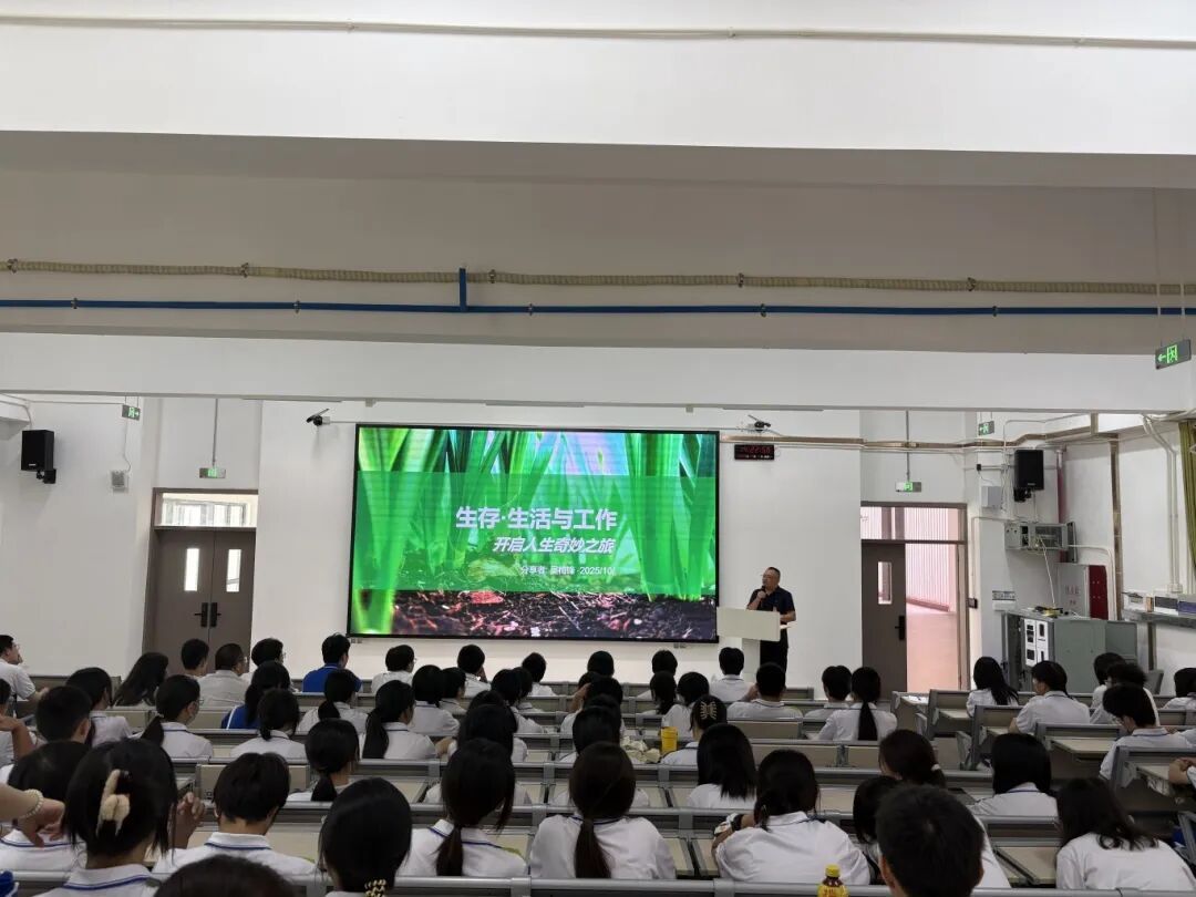 为构建更加开放、多元的教育共同体,促进学生全面发展,2025年10月15日,我校第二期“家长导师进校园”如期举行。本期特邀请广州涉外康复医学院客座教授、学生家长吴梅锋先生,以“生存·生活与工作——开启人生奇妙之旅”为主题,为学生们带来一场兼具理论深度与实践温度的人生规划课。