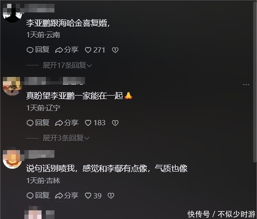 而李亚鹏则与新生代模特海哈金喜组建家庭,并迎来第二个女儿的降生,