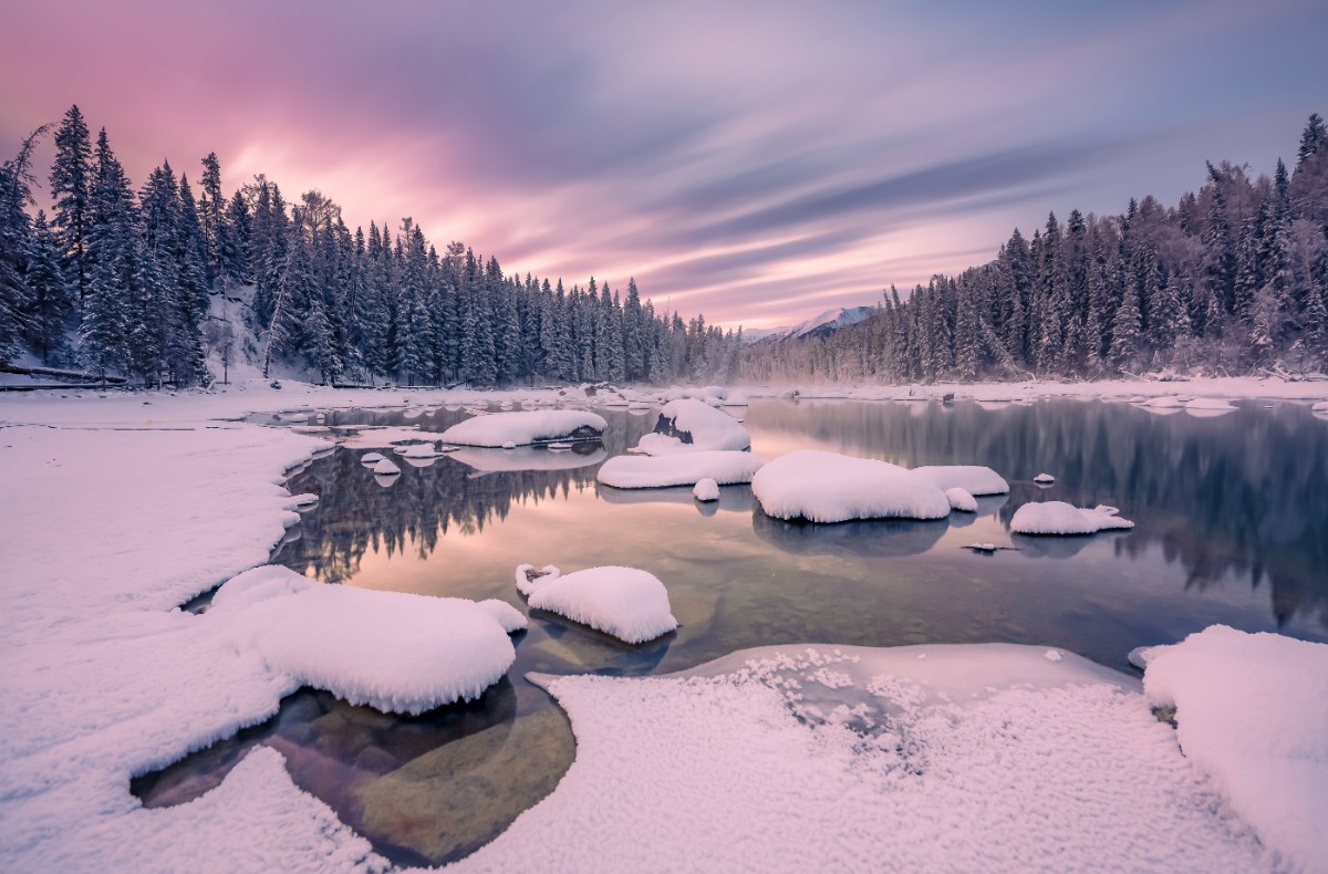 喀纳斯:静谧的蓝冰秘境 冬季的喀纳斯褪去人潮,化作与世隔绝的雪域童话。月亮湾冻结成蜿蜒的蓝丝带,禾木村的木屋炊烟袅袅,晨雾中骑马踏雪的牧民,构成一幅流动的雪乡画卷。乘马拉爬犁穿越白桦林,雪深没膝如行走在棉花海,夜晚住进图瓦人木屋,枕着星空与风雪入眠,极致治愈。